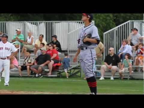 Aaron nola lsu pitching for the harwich mariners in the cape cod baseball league