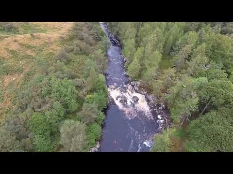 The falls descend a narrow gorge with the upper fall being a 6-metre (20 ft) drop. The lower fall is a thin broken sheet of water down about 12 metres (39 ft) of rock and when in spate this becomes a torrent which has several pools providing a means for salmon to ascend. The location is the type locality and best-studied area of the Achness Thrust, a thrust fault which dips 40 to 50° to the south at the falls. Present nearby are the ruins of a broch and a more modern chapel. By the side of the river is an old cemetery and there are woodland walks.