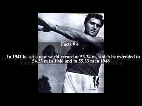 Consolini was the youngest of five children in a farmer family. His first athletics competition was a local stone throwing contest in 1937. A few months later he started training in the discus; already in 1938 he finished fifth at the European championships, and in 1939 won the first of his 15 national titles. In 1941 he set a new world record at 53.34 m, which he extended to 54.23 m in 1946 and to 55.33 m in 1948.