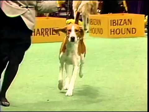 The American Foxhound is taller and rangier than its cousin, the English Foxhound. Also, this breed is known to have a musical bark when it is hunting that can be heard for miles, probably inherited from the Grand Bleu de Gascogne's signature howl. If competing in a dog show, some physical characteristics that judges would look for would be a slightly domed skull, long, large ears, large eyes, straight muzzle, well laid-back shoulders, a moderately long back, fox-like feet, and a slightly curved tail. Though they are traditionally tri-colored (black, white and tan) they can be any color. They are one of the rarest breeds in the American Kennel Club.