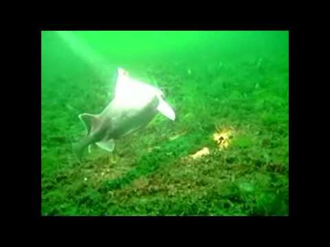 - Angular roughshark oxynotus centrina preying on a ray egg in aquarium