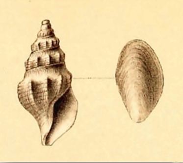 (Original description) The shell is broadish, conical and sharply keeled. It has a shortish contracted base and a short snout, short narrow ribs, and spiral threads, a bulbous apex, strong, porcellaneous. Below the sinus area and about one third down the whorl from the suture arise, not quite abruptly, longitudinal ribs slightly tubercled at the top, straight, direct, narrow, and parted by shallow furrows about twice their breadth. They become feeble toward the lower suture. On the body whorl they do not continue to the base,and become broader and weaker toward the aperture. There are eleven on the last and penultimate whorls. On the first infra-embryonic whorl there are about seventeen, crowded, sharp, scarcely curved and oblique. The lines of growth are numerous and unequal. In the sinus-area they are sharp and delicate, on the rest of the shell coarse and puckered. Marginating the suture at the top of each whorl is a narrow scarcely swollen spiral band. Below this the sinus area is very finely, almost microscopically, scratched ; and this scratch-sculpture is continued, though less distinctly, on the rest of the surface. The projection of the top of the ribs forms a sharp keel. The rib area is crossed by five coarsish threads, which rise into small tubercles on the ribs. One or two smaller threads come in between the lines of these spirals. The same sort of threads, but less distinct, are found on the base. Those on the columella and snout are a little more distinct. The colour is dull porcellaneous white. The epidermis is quite gone. The spire is rather short, conical, very slightly scalar, cylindrical toward the top. The apex consists of two smooth embryonic whorls, swollen and roundedly pressed down, with a deepish suture, rather more prominent than the regular whorl which follows. The shell contains 6½ short whorls, of rather rapid increase. The body whorl is large relatively to the rest. From the suture to the ribbing they are concavely shouldered. The projection of the tubercles at the top of the ribs forms a carination. which does not really exist in the form of the whorls themselves. There is a very slight contraction towards the lower suture. The body whorl contracts slightly from the keel to the edge of the base, and from that point rapidly to the small, narrow, straight, and direct snout. The suture is coarse, slightly impressed, and well defined by the band below it. The aperture is narrowly oval, pointed above, with an oblique, short, rather open and gradually contracted siphonal canal in front. The outer lip is a rather depressed convex curve, a little concave at the top and flattened toward the point: on leaving the body it retreats at once, forming a shallow, blunt V-shaped sinus, from the lower side of which, with little of angulation, it advances very straight to the edge of the siphonal canal, whence it slowly curves backward round the open point of the snout. The inner lip spreads as a very narrow porcellaneous glaze. It runs very obliquely to the base of the shortish narrow columella, below which point it is a very little hollowed. The point of the columella is cut off with a very slight obliquity, and has a blunt and very slightly twisted edge. The operculum is small, oval, smooth, with hair-like striae. The apex is terminal The colour is pale brownish yellow.
