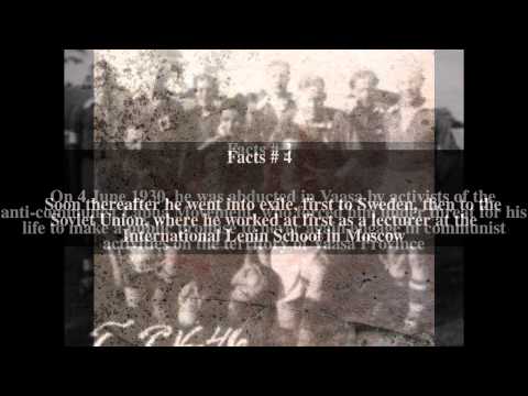 On 4 June 1930, he was abducted in Vaasa by activists of the anti-communist Lapua Movement, who forced him under threat for his life to make a public promise to never again engage in communist activities on the territory of Vaasa Province. Soon thereafter he went into exile, first to Sweden, then to the Soviet Union, where he worked at first as a lecturer at the International Lenin School in Moscow. He worked in administrative functions in Leningrad from 1935 to 1936 and in the Karelian ASSR from 1936 until 18 August 1937, when he was dismissed.