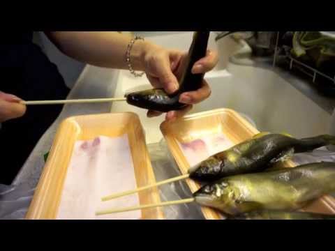 A common method of preparing ayu and other small fish in Japan is to skewer it in such a way so that its body forms a wave, making it look as though it is swimming.