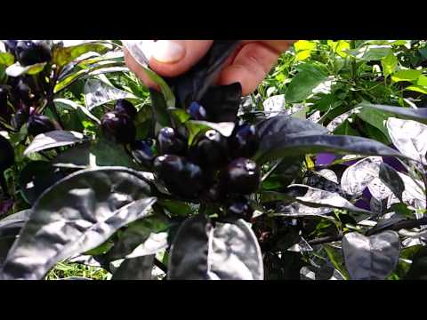 Black Pearl pepper is a cultivar of Capsicum annuum. It is characterized by distinctive black leaves and fruit. It was developed by Arboretum Floral and Nursery Plants Research Unit scientists Rob Griesbach and John Stommel of the Agricultural Research Service’s Vegetable Laboratory. This pepper plant is notably similar to another strain, named the Black Hungarian, another designer pepper plant. Though edible, it is considered an ornamental plant and even won an award for its beauty from All-Americas Selections in 2006. The Black Pearl has characteristic semi-gloss black to deep-purple leaves with peppers that are black and turn crimson when fully ripened.
