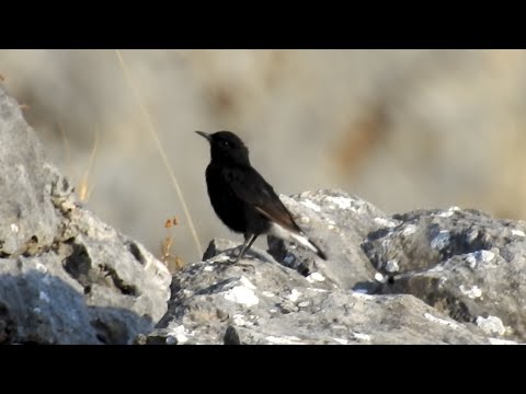 The black wheatear (Oenanthe leucura) is a wheatear, a small passerine bird that was formerly classed as a member of the thrush family, Turdidae, but is now more generally considered to be an Old World flycatcher of the Muscicapidae.