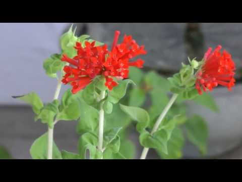 Bouvardia ternifolia is a shrub up to 120 cm (4 feet) tall. It has dark green, narrowly egg-shaped leaves. Flowers are speculacular: long, tubular, bright scarlet, up to 10 cm (2 inches) long, in clusters at the ends of the branches. Hummingbirds frequently imbibe the nectar from the blooms.