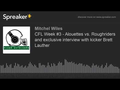 - CFL Week 3 Alouettes vs Roughriders and exclusive interview with kicker Brett Lauther