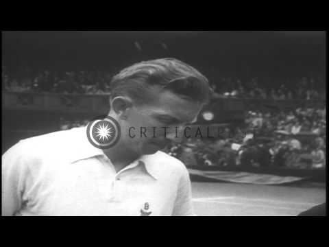 Donald budge defeats bunny austin in wimbledon and helen wills moody beats helen hd stock footage