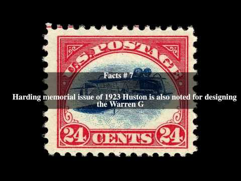 Dozens of United States postage stamp designs were created by Huston. Besides designing the world-famous Curtis Jenny airmail stamp, Huston is credited for designing the Founding of Jamestown issues, the Abraham Lincoln and Ulysses S. Grant regular issues of the 1920s, the Huguenot Walloon commemorative issues of 1924, The Pilgrim Tercentenary of 1920 and the American Indian regular issue of 1923. The Washington-Franklin Issues and his seven contributions to the 1932 Washington Bicentennial Issue are among his more famous designs.