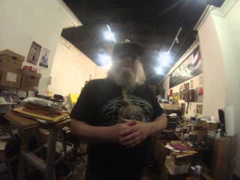 Patterson has worked in a variety of mediums including etching, drawing, sculpture, lithography and photogravure. Though technically trained as an artist, Patterson's sculpture style is more akin to so-called outsider or folk art, often incorporating found objects, vibrantly painted and collaged in elaborate vitrines and decorated frames. His painting and drawing is heavily informed and influenced by tattoo and graffiti culture. Some of his large scale murals have appeared throughout the Lower East Side. From 1980-1982, Patterson's work was shown in a number of downtown galleries. As Patterson grew disenchanted with the SoHo art world, he distanced himself from the traditional gallery scene and moved deeper into the underground scene of Lower East Side.