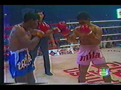 At 11, he started to train muay thai. With no money or resources, he made his own equipment by stuffing rice hulls and sawdust into canvas rice bags. Mimicking the moves of local fighters, he practiced daily after attending school and completing his farming chores. That same year he entered his first fight at a local temple, which resulted in a draw. The little money he earned went towards his family and education. Thus, his career was born.
