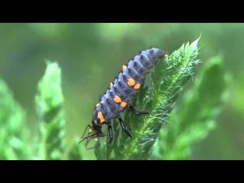 Coccinella septempunctata larva munching aphids pristurus