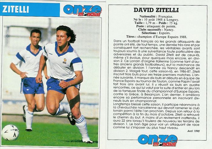 Playing position Name David Zitelli Years Team Role Footballer | 1985–1992 AS Nancy Height 1.82 m Position Forward | |