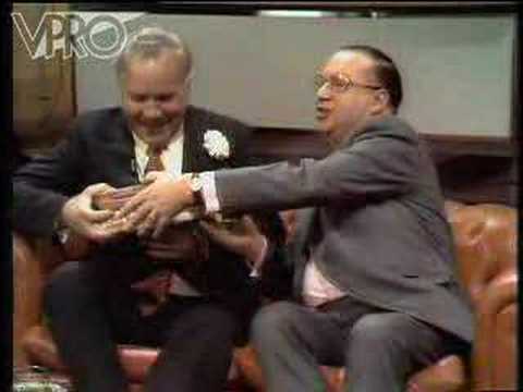 The show was built around two main characters, Fred Haché (Harry Touw) and his assistant Barend Servet (IJf Blokker), with cameos by Kees van Kooten, Wim de Bie, poet Simon Vinkenoog, and Dolf Brouwers, who would return as the regular Sjef van Oekel character in Barend is weer bezig and Van Oekel's Discohoek. Schippers tendency to treat serious matters in irreverent fashion is exemplified in the interview with God, which Jan Blokker, then director of VPRO television, had cut from the show: apparently the show had at some point been unable to get more guests, and Schippers thought God would make a good guest for an interview with Fred Haché, who asked him if He didn't think it unreasonable that people who lived their life carelessly "could get into heaven by converting just before death comma God?" ("Comma" was one of Haché's catchwords.) God promised to consider it. The fragment is lost, though the audio was saved.