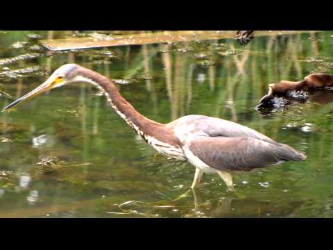 These herons feed on insects, fish and amphibians, caught normally by cautious stalking.