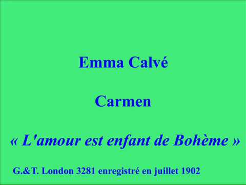 Emma Calvé Carmen L'amour est enfant de Bohème London G &T 3281 enregistré en juillet 1902