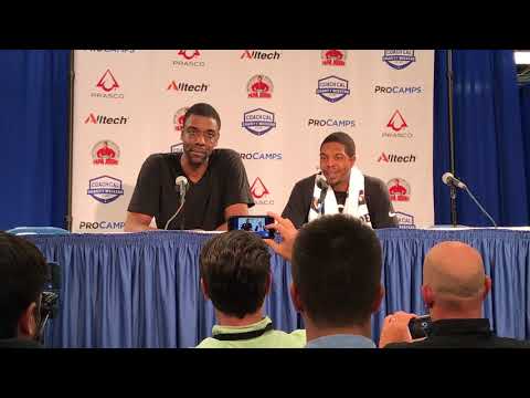 Shagari alleyne and erik daniels speak to the media following uk legends game