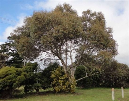 Yellow gum is a small to medium-sized tree with rough bark on the lower 1–2 m of the trunk, above this, the bark becomes smooth with a white, yellow or bluish-grey surface. Adult leaves are stalked, lanceolate to broad-lanceolate, to 13 x 2.5 cm, concolorous, dull, green. The white, pink or red flowers appear during winter. The leaves are distilled for the production of cineole based eucalyptus oil.