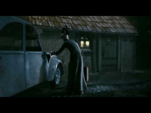 Convinced by the hoax, Moulin signs over his savings to the priest, who sits counting his take when there is a knock at the door. The Grim Reaper is somewhat flummoxed and explains he is late in collecting a Mr. Moulin who died in a fall involving a red sock. Thinking quickly, Moulin points to the priest, who is holding the sock with his money. The Grim Reaper advances on the terrified priest and slashes him with his scythe, splattering blood across Moulin's face.