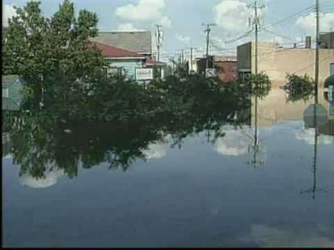 The Blackwater River, running along the eastern boundary of the city, played an important role in the industrialization of the city, but has not been immune to problems plaguing rivers, most notably flooding. In 1999, in the aftermath of Hurricane Floyd, downtown Franklin was submerged under as much as 12 feet (3.7 m) of water as the Blackwater River swelled to a historic crest of 26.4 feet (8.0 m). The resultant flooding caused the submersion of 182 business and 150 homes, located primarily in downtown. When the hurricane name "Floyd" was retired in 2000, the name chosen as a replacement was Franklin. In 2006, Franklin endured another large-scale flood reaching just below the record 23-foot (7.0 m) water line set from the 1999 flood. The flood was the result of a storm which distributed a large amount of water throughout the watershed in which Franklin resides.