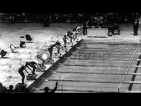 Us jed graef leads his teammates gary dilley and bob bennett in men s 200 meter b hd stock footage
