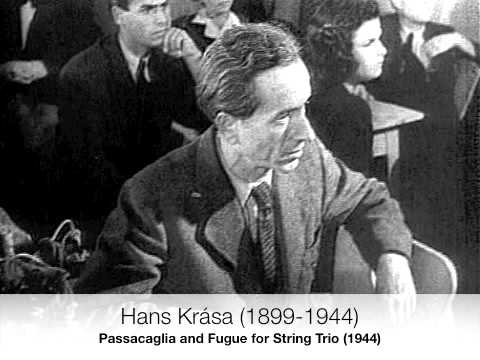 Along with fellow composers Viktor Ullmann, Pavel Haas and Gideon Klein, Krása was taken to Auschwitz. He was murdered on 17 October 1944; he was not yet 45 years old.