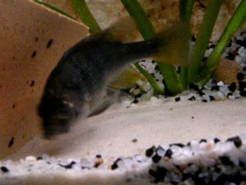 Males are black during spawning with red anal and dorsal fins. Females have dull coloration consisting of brown and green shades. Dominant males become very aggressive and territorial when spawning. As with other cichlids, their life expectancy is around 10 years.