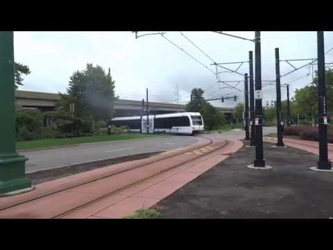 Norfolk va tide lrt 401 lrv arriving at harbor park station