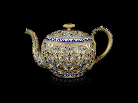 - ANTIQUE 19thC IMPERIAL RUSSIAN SOLID SILVER ENAMEL TEAPOT IVAN SALTYKOV c1894