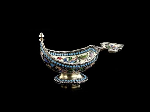 - ANTIQUE 20thC RUSSIAN SOLID SILVER SHADED ENAMEL KOVSH IVAN SALTYKOV c 1900