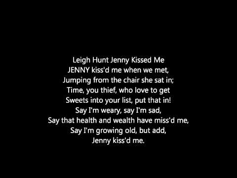 - Jenny kissed me by leigh hunt a poem