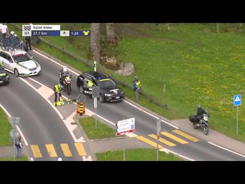 Jesper hansen gets knocked off his bike by the medical car