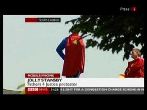 On 8 June 2008, Jolly Stanesby and Mark Harris climbed onto the roof of Labour Party deputy leader Harriet Harman's house wearing superhero-style costumes and calling themselves "Captain Conception" and "Cash Gordon". One of the pair, Mark Harris, said he wanted fathers to have the same right as their mothers' new partners. He also said they would not come down unless Harman read his book, "Family Court Hell". Harris later received a conditional discharge whilst Jolly Stanesby was jailed for two months.