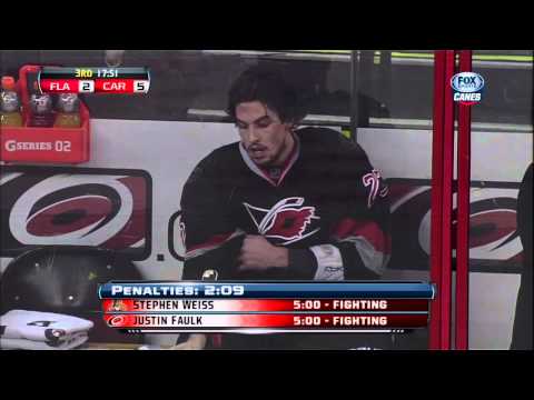 - Stephen weiss vs justin faulk fight 2 mar 2013 florida panthers vs carolina hurricanes nhl hockey
