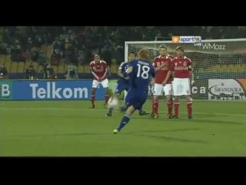 Honda scored the only goal in Japan's 2010 FIFA World Cup match against Cameroon, finishing off Daisuke Matsui's cross into the top left corner of the net. His performance in the game gained him the Man of the Match Award from FIFA and the 1-0 victory was Japan's first World Cup triumph on foreign soil. In the final group-stage game against Denmark, he scored a magnificent free kick in the 17th minute from 30 yards out. He then turned provider for Shinji Okazaki after making his way into the penalty area, with a Cruyff Turn that beat a Denmark player, in the 88th minute to make the score 3–1 to Japan, a performance that earned him the "Man of the Match" award once more and qualified Japan for the knockout stage. In their round of 16 matchup, Japan were eliminated by Paraguay, falling 3-5 in penalty kicks after the game finished goalless through extra time.
