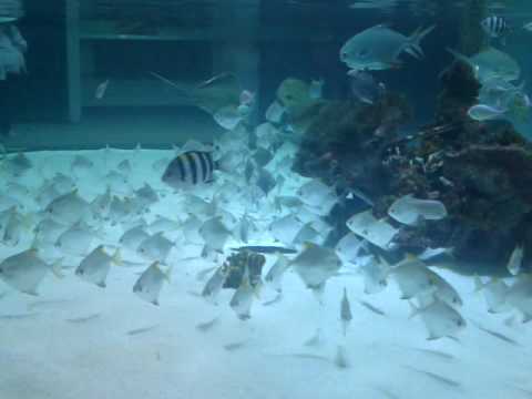 Eight aquariums ranging in capacity from 1,000 litres to 18,000 litres. A wide variety of seawater species are exhibited, including blacktip reef sharks, bamboo sharks, moray eels, giant grouper, stingrays, scorpion fish and seahorses. The aquarium also exhibits many species of corals, and many reef fish, such as clownfish.