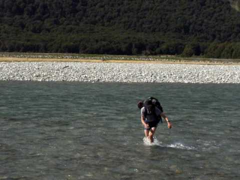 - Crossing the makarora river