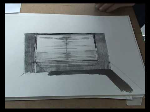 Visually, Bauer’s works are typically dark in tone and the contours of his figures are often blurred, through his practice of using a hard thin eraser to rub away and smear the graphite and lithographic chalk and to achieve a sense of depth. This blurring effect partly gives Bauer’s drawings their distinctive “look” and also subverts the traditional concept of the line as the defining element in the art of drawing, as in some works – especially his landscapes or images of deserted cinemas and swimming pools – the dense application and distribution of the graphite has, at first glance, a paint-like, textured appearance. This effect culminates in the technique deployed in Bauer’s animated film The Architect, in which the application of a oil paint on Plexiglas is captured in thousands of stop-motion images and even becomes a narrative element in itself which propels the story forward.