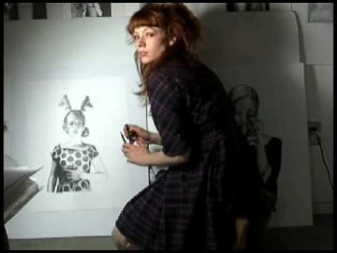 Mercedes Helnwein's large-scale drawings, most of which are done with black pencil, colored pencils, or pastels.