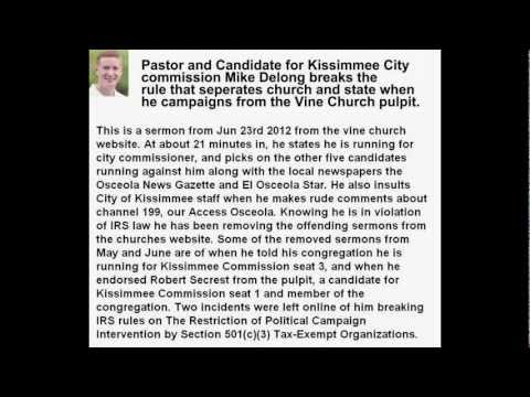 - Mike delong pastor of the vine church violating the one law that seperates church and state june 24