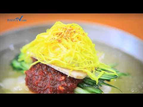 Milmyeon (Hangul: 밀면, meaning "flour noodle") is a Korean dish of long and thin noodles similar to naengmyeon, representing the dishes of Busan. The noodle is basically mixing flour powder with starches of sweet potato and potato with meat broth, which bring it and water, several kinds of vegetables to a simmer in saucepan. The mixture of flour is not fixed at certain ingredients, leading to several transformation like using Artemisia princeps for ssuk milmyeon (쑥 밀면). Milmyeon also has its variety of mul milmyeon and bibim milmyeon applicable for naengmyeon. The difference between the two is chiefly spicy sauce for bibim milmyeon.