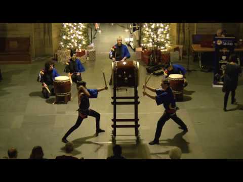 The Japanese Nationality Room celebrates traditional Japanese carpentry and woodcraft, evoking the mid-18th century minka which were houses of the non-ruling classes of Japan. This room is representative of minka that might be the residence of an important village leader in a farm village on the outskirts of Kyoto and the design represents the core rooms of the house: a plank-floored ima or household sitting room and the adjacent doma, an area with a compacted earthen floor used as an entry-way, for cooking and as a work space. The doma was also a space for household life, where farm, business and craft activities could be carried out under a roof. In the past it also provided a place for drying grain during rainy weather. A central feature of the room is the massive, rough-hewn beam, the ushibari of Japanese pine, supported by posts at the boundary of the ima and doma elements of the room. The main beam in this room had been carefully preserved by the carpenters in Japan for many years until a project could be found to appropriately utilize its unique curvature. To accommodate the weight concentrated on the primary post, the daikokubashira, the layout of the room has been designed so that this main post sits directly above the building's existing superstructure. The major posts are made of zelkova, (keyaki), a hardwood with a distinctive grain pattern. The other beams are made of American pine. The posts and beams are connected without nails, using traditional joinery techniques. The ceiling is of bamboo with joined beams which would have allowed for the circulation of warm air from fireplaces below. The walls mimics the typical mud plaster walls through the use of textured wallpaper and wooden wainscoting for greater durability. The bay window is a structure not in keeping with traditional Japanese design and has been masked with panels that suggest shôji, sliding doors of lattice frames, covered with translucent paper. The ima is suggested with a plank wood floor covering the largest portion of the room. The floor toward the front of the room is made of a simulated earthen material to represent a portion of the doma where it meets the ima's wooden floor. Although the a traditional design would call for the wooden floor to be much higher than the dirt floor, this feature has been eliminated in the classroom for practicality. Located on the rear wall, is the tokonoma, a raised alcove for the display of treasured objects, flower arrangements, and seasonal decorations. The tokonoma has been built in shoin-style, with shôji along its exterior side. The corner post, tokobashira, is made of ebony and the floor of the tokonoma is tatami. The display cases at the rear of the room and along the interior wall contain artifacts in keeping with the period and include a chagama and furo, an iron kettle with metal charcoal hearth/brazier combination, used in the "tea ceremony." While typical minka would have no chairs at all, in keeping with its function as a classroom, the classroom has wooden chairs designed and crafted specifically for students and are consistent in design with the rest of the room. Sliding wooden panels cover the blackboard at the front of the room. The interior surface of the entry door has been modified with a wooden treatment that suggests the sliding door that was the typical entrance to a house of this period.