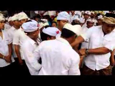 Ngerebong in the village of Kesiman, Denpasar, means of assembly, the gathering of the god. Ngerebong is a tradition that is held by the people Hindu in Pura Pangrebongan. This tradition is usually done every six months in a calendar calendar Bali which is on the Sunday or Pon Redite wuku Medangsia. Usually the streets are closed when the tradition is being carried out, because people believe this tradition is a sacred tradition. Community Ngerebong ceremony began with prayers in temple.