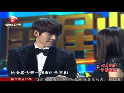 - Kim Woo Bin Park Shin Hye accepting reward for Popular TV Drama Actor Actress Award in China