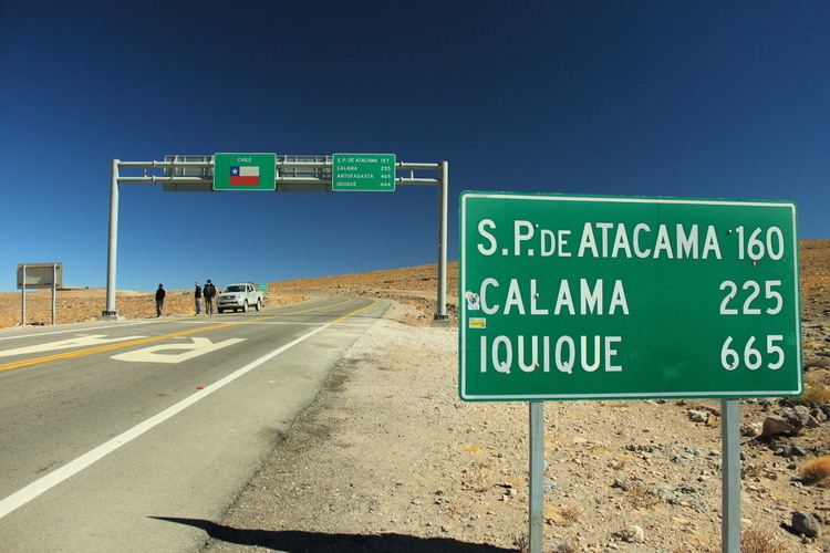 The Paso de Jama is a mountain pass through the Andes between Chile and Argentina, at an elevation of 4,200 m (13,800 ft) at the border. It is the northernmost road border crossing between the two countries. The pass is reached via Chile Route 27 and via National Route 52 (Argentina). The Chile Route 27 reaches an altitude of 4,810 m (15,780 ft) 100 km west of the border.