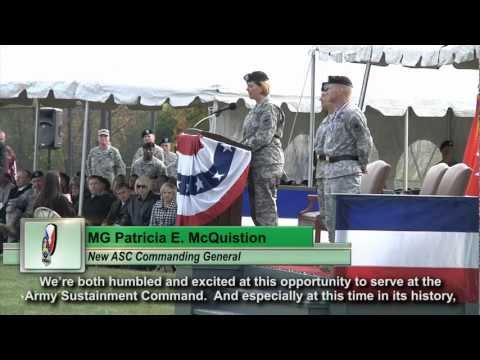 Patricia McQuistion was appointed as commanding general of the 21st Theater Sustainment Command in Kaiserslautern, Germany on May 12, 2009. Brigadier General McQuistion was relieved from her command in Columbus on August 6 and assumed her new command on August 20. She was subsequently nominated for promotion to the rank of major general on October 15. This nomination was quickly reviewed and approved by the Senate on October 28. She received this promotion on November 10. After serving in Germany for two years, she was appointed commanding general of the U.S. Army Sustainment Command in Rock Island, Illinois on April 5, 2011. Major General McQuistion was relieved from her previous command on August 25 and assumed her new position on October 28.