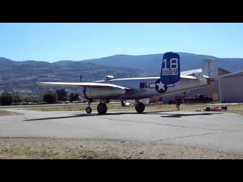 - B 25 maid in the shade at penticton regional airport taking off