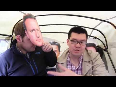 Philip ling and luke taylor lib dem candidates chat in the back of a tuk tuk