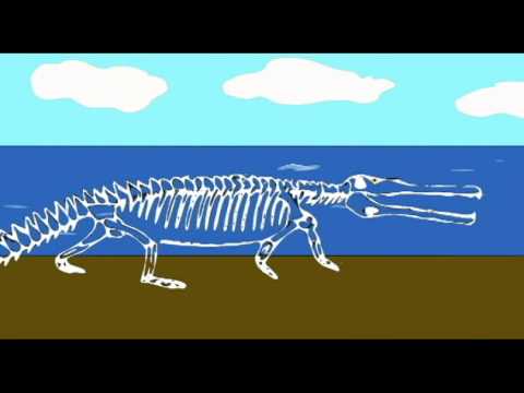 Inversely, some dolichorostral forms like Mystriosuchus have become further specialised to life in the water, and might even have occurred in marine environments. A skeleton of Mystriosuchus planirostris, found in a marine setting and with evidence of little post-mortem transportation - indicating that it died either at sea or in a freshwater environment nearby - shows that this animal had paddle-like limbs, less adapted for terrestrial locomotion than in most other phytosaurs, and might have even had a tail fin, based on its caudal curvature akin to that of thalattosuchians and "some sauropterygians".